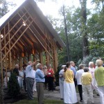 Ann and Bob Blecken, longtime supporters of the botanic garden, had a vision to build an organic pavilion that blended with the surrounding landscape to create a serene backdrop for public events like weddings and casual gatherings. The design focused on incorporating the site’s natural elements through the use of materials, capturing views and selection of surrounding plantings. “In the winter, when the leaves are off the trees, you can see the lake and red-drum bridge in the Japanese garden,” Ann has said of the pavilion’s site selection. “I think it’s the most gorgeous setting in the world.”